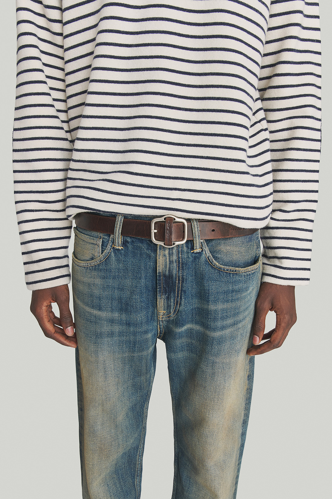 - Belt in solid color leather.