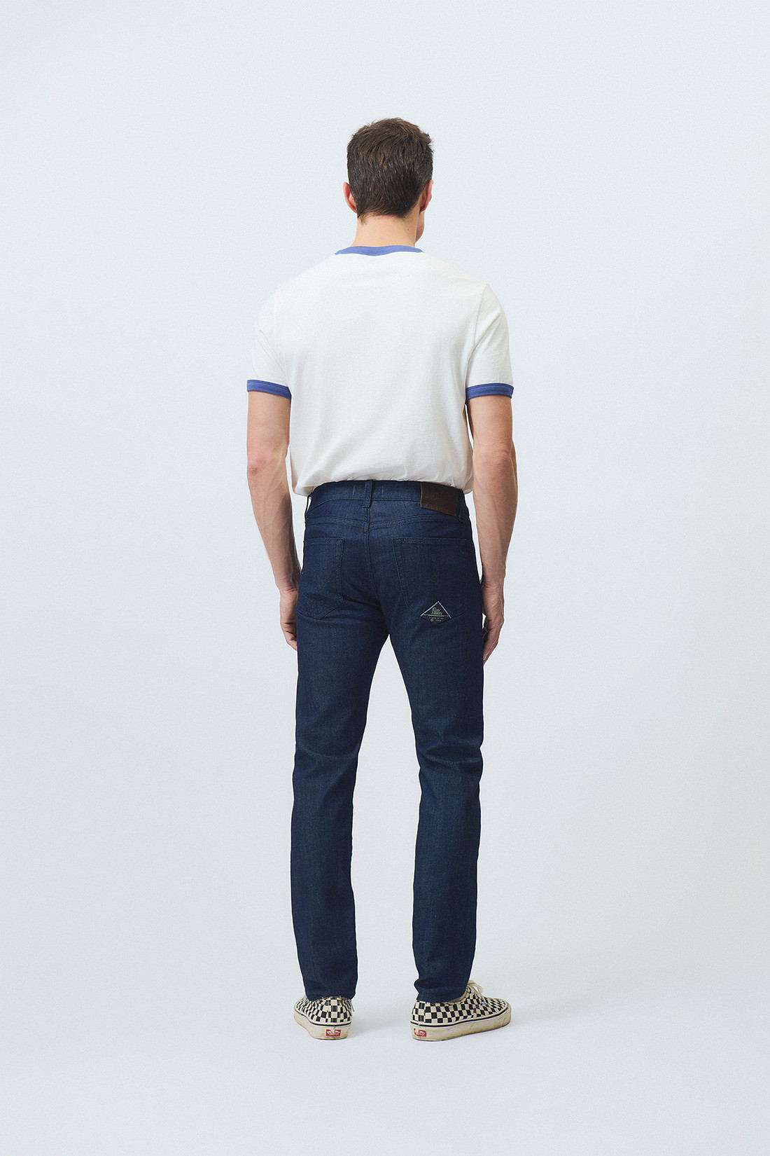 - Jeans in one wash denim.