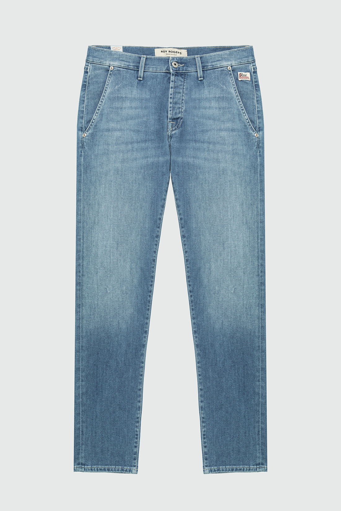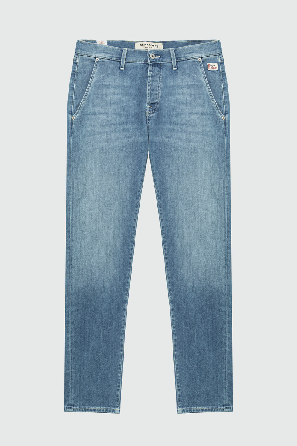 - Medium waistband with belt loops and rear label.