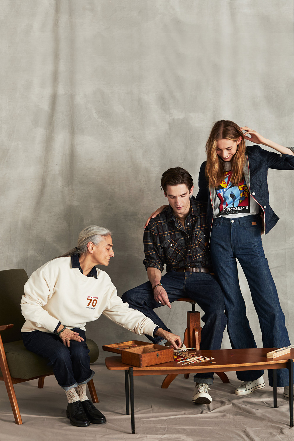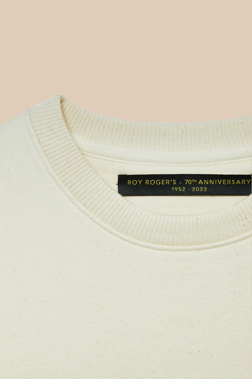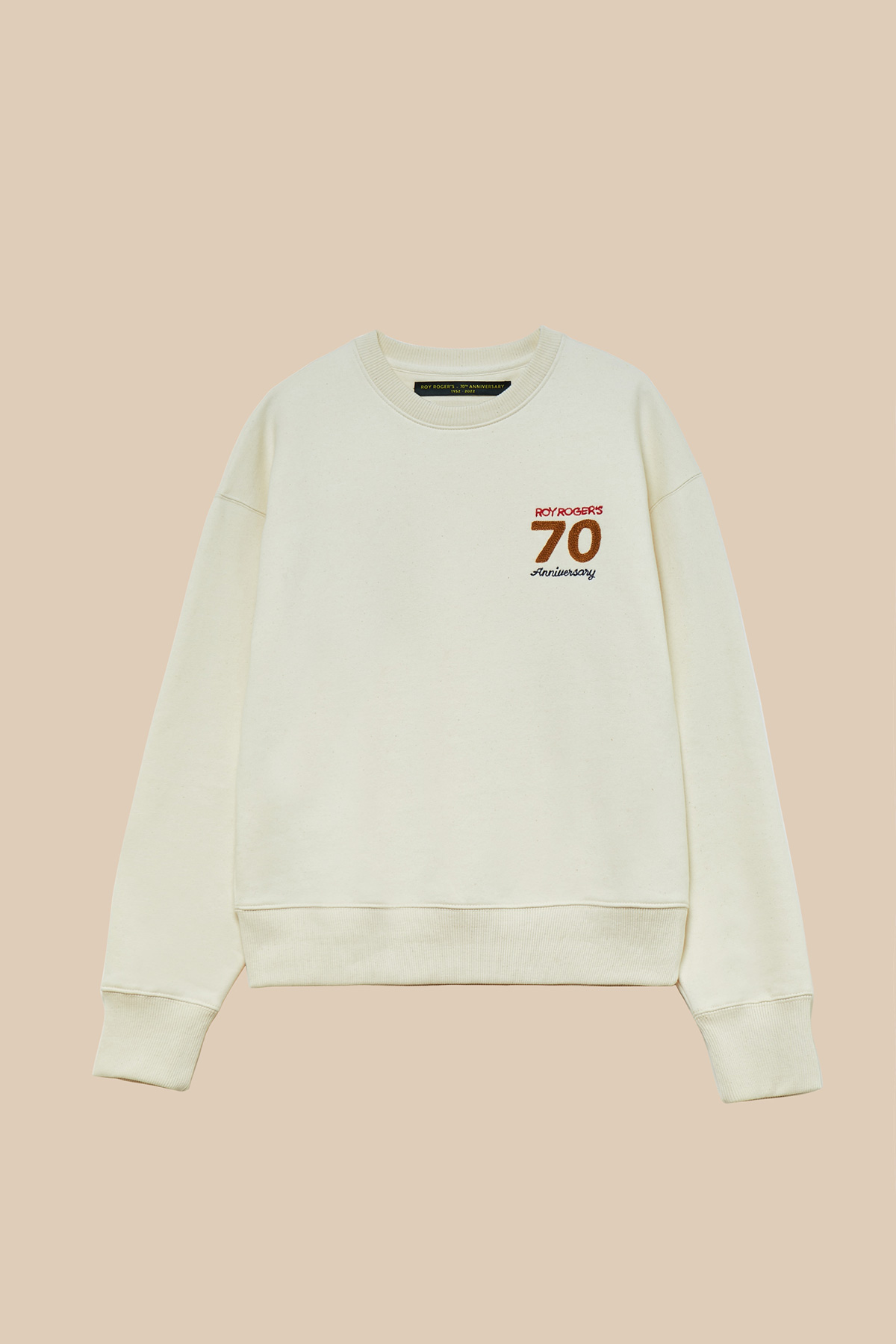 - Made in Italy scoop neck sweatshirt in solid color COTTON. Roy Roger's 70 Anniversary multicolor embroidery at chest.