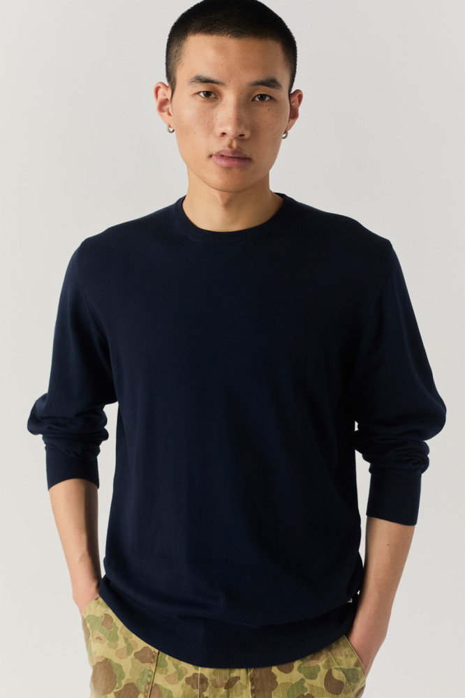 - Solid color cotton crew neck sweatshirt.