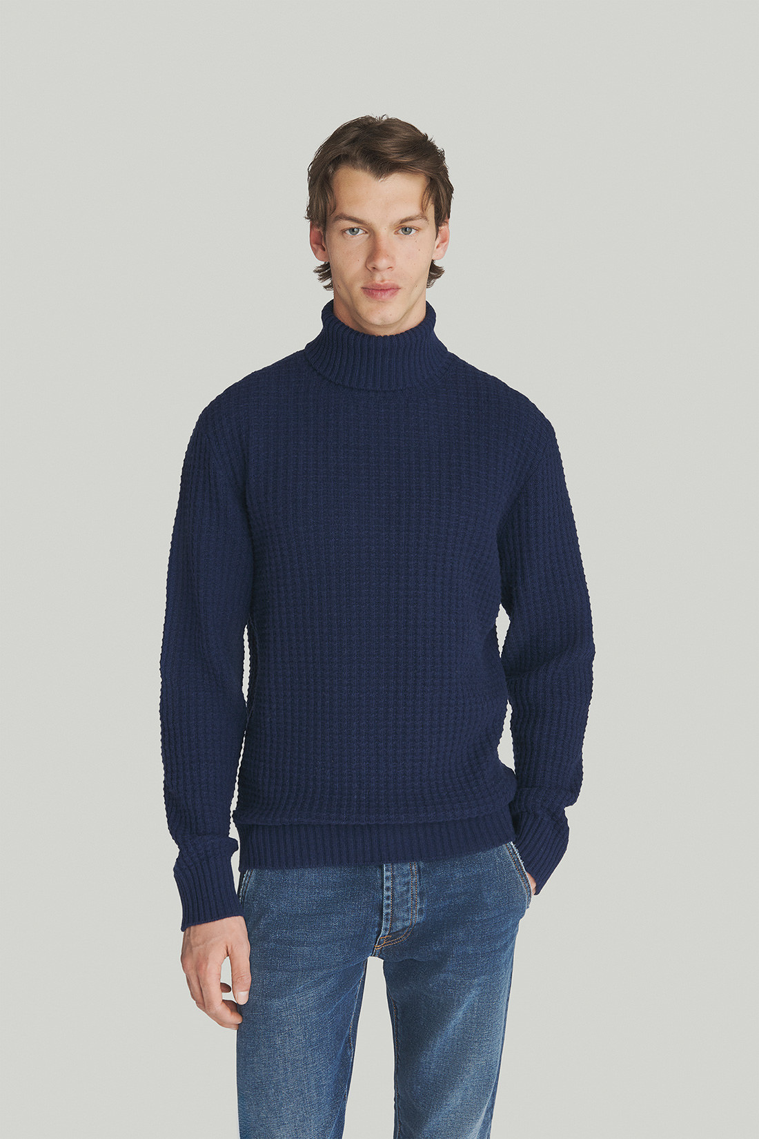 WAFFLE TURTLENECK SWEATER IN MERINO WOOL