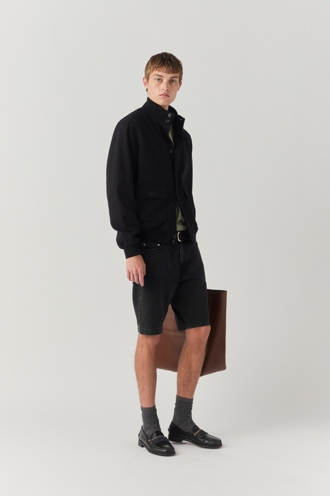 - Jacket in rinse-wash "loom state" denim with contrast stitching.