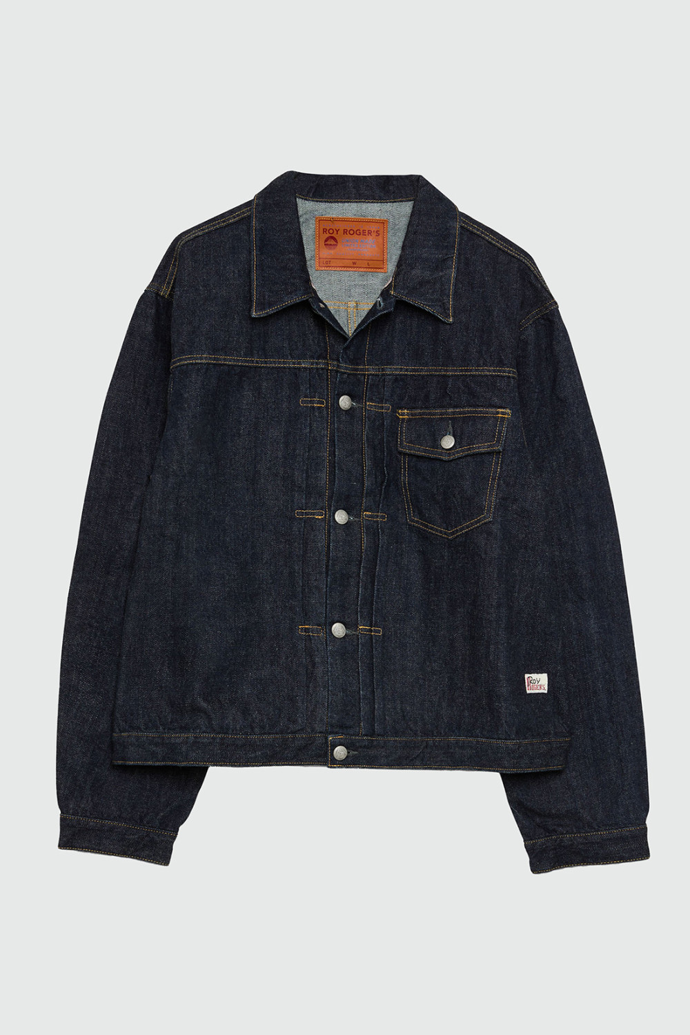 Jacket from the Roy Roger's Made in Japan Capsule Collection, crafted with denim sourced from the Bingo region, renowned as the heart of Japanese denim production. This results in a fabric that exemplifies exceptional quality and craftsmanship. The denim used is described as "loom-state," meaning it undergoes no finishing processes after weaving, preserving a vintage aesthetic true to early 20th-century jeans. This project was created to celebrate another denim excellence, in addition to Made in Italy: Japan. It highlights the dedication of small local businesses that continue to produce jeans using traditional artisanal methods.