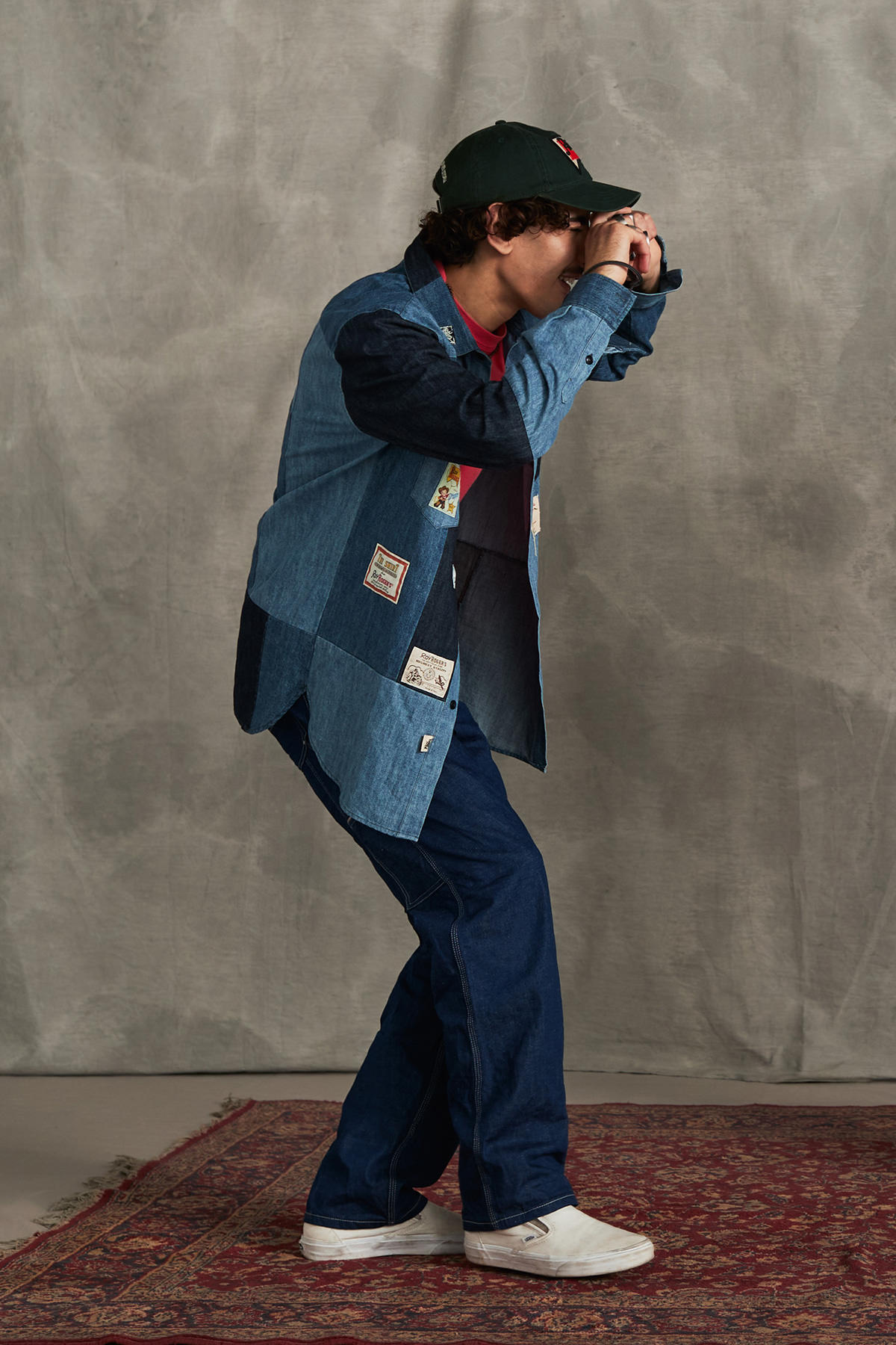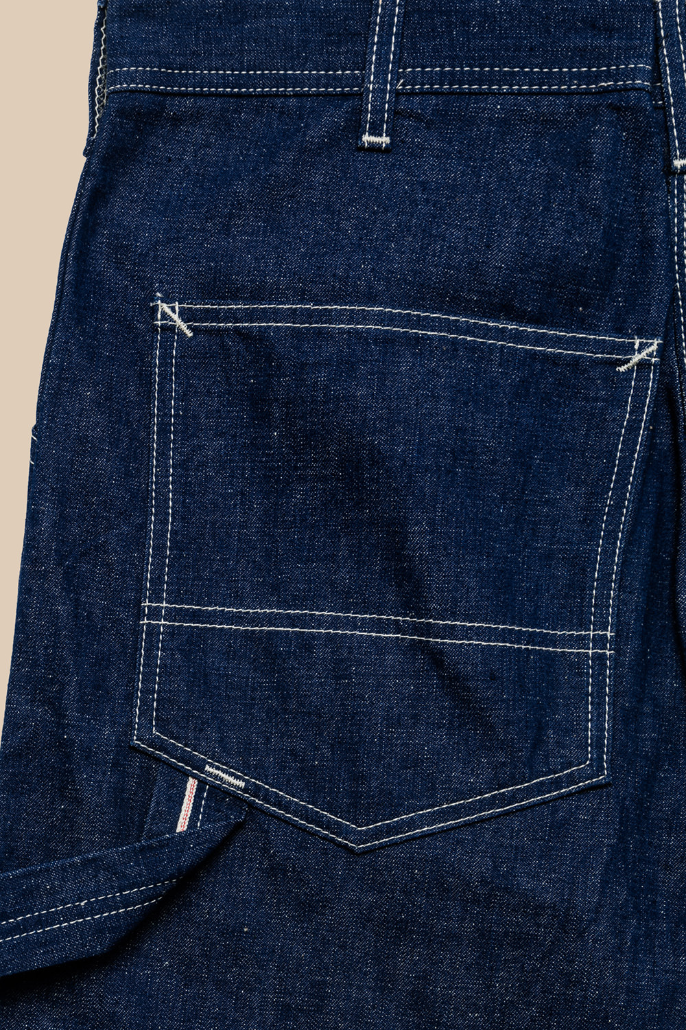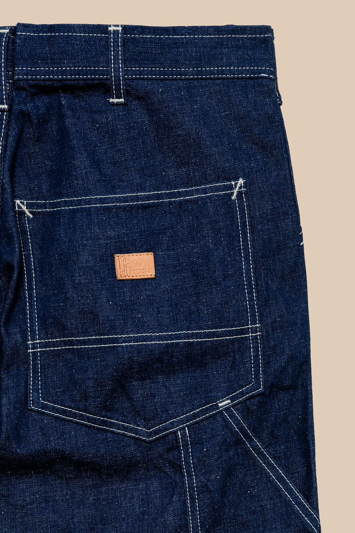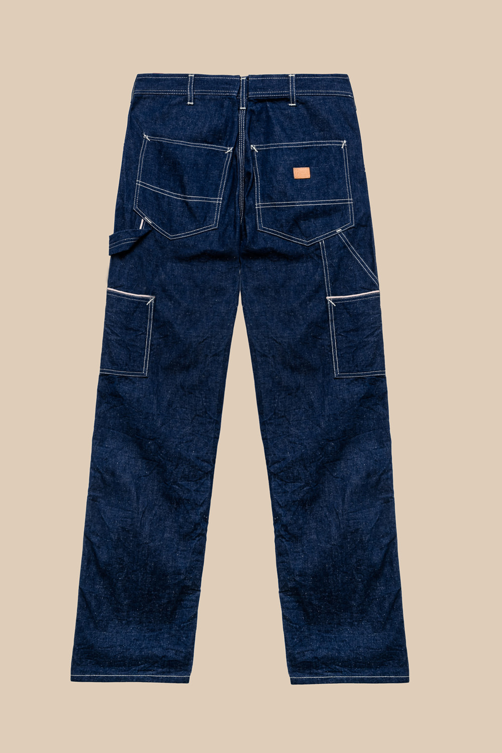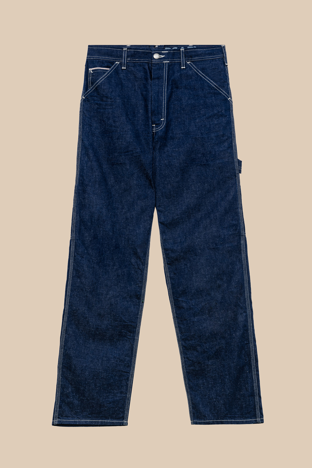1960s work pants. A study was carried out on the choice of fabric leading to the use a 2x1 selvedge denim which is a typical feature of workwear. This type of fabric is very resistant yet soft at the same time.