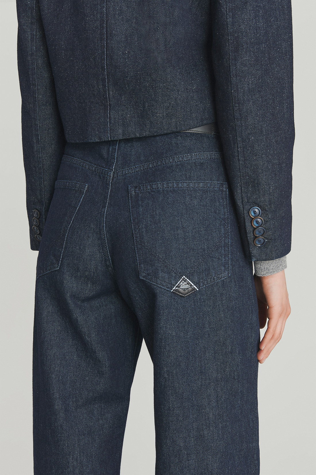 - Medium waistband with belt loops and rear label.