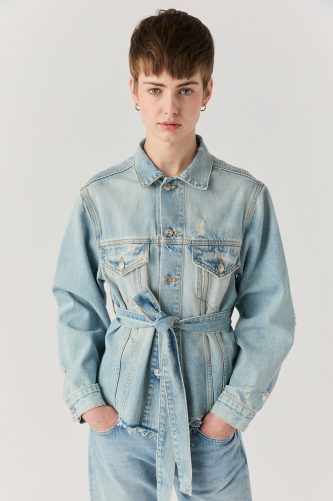 70TH TRUCKER JACKET IN RINSE WASH SELVEDGE DENIM