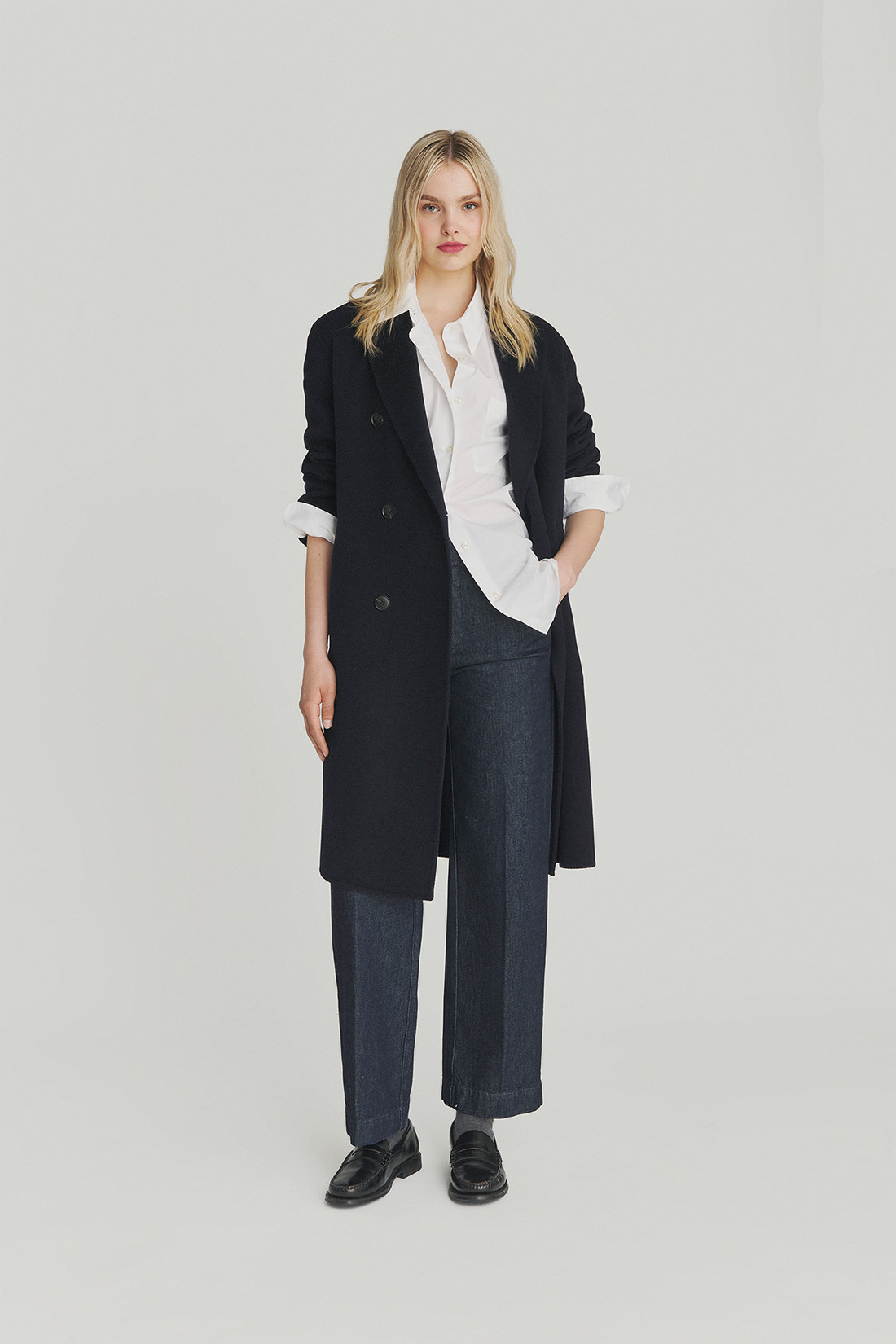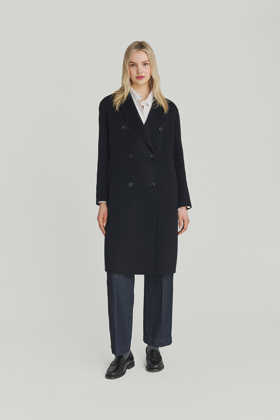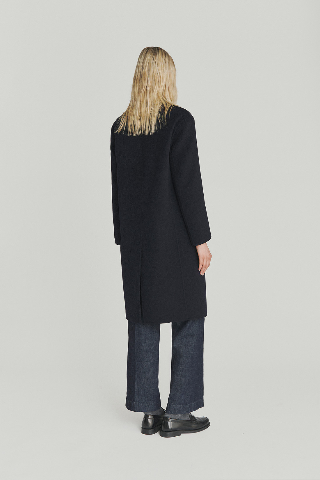 - Coat in solid color double-layer wool.