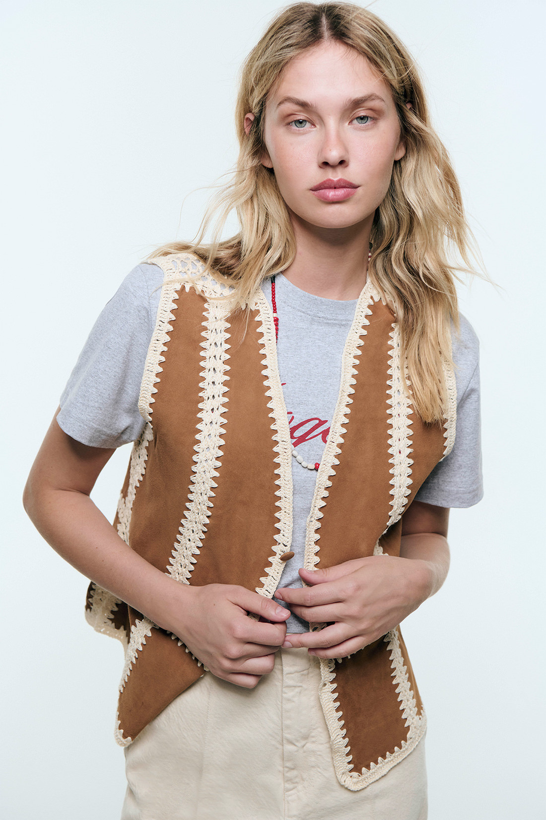 - Edges and details accented with crochet embroidery in contrasting colors.
