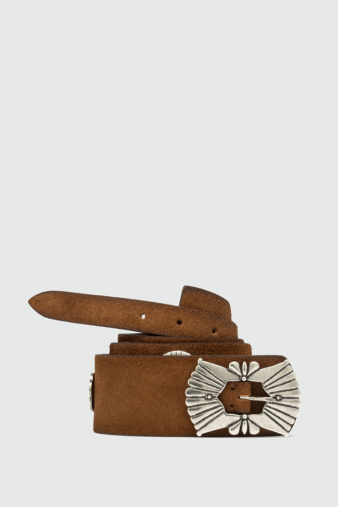 - Cintura realizzata artigianalmente in Toscana in pregiato suede color cognac.
