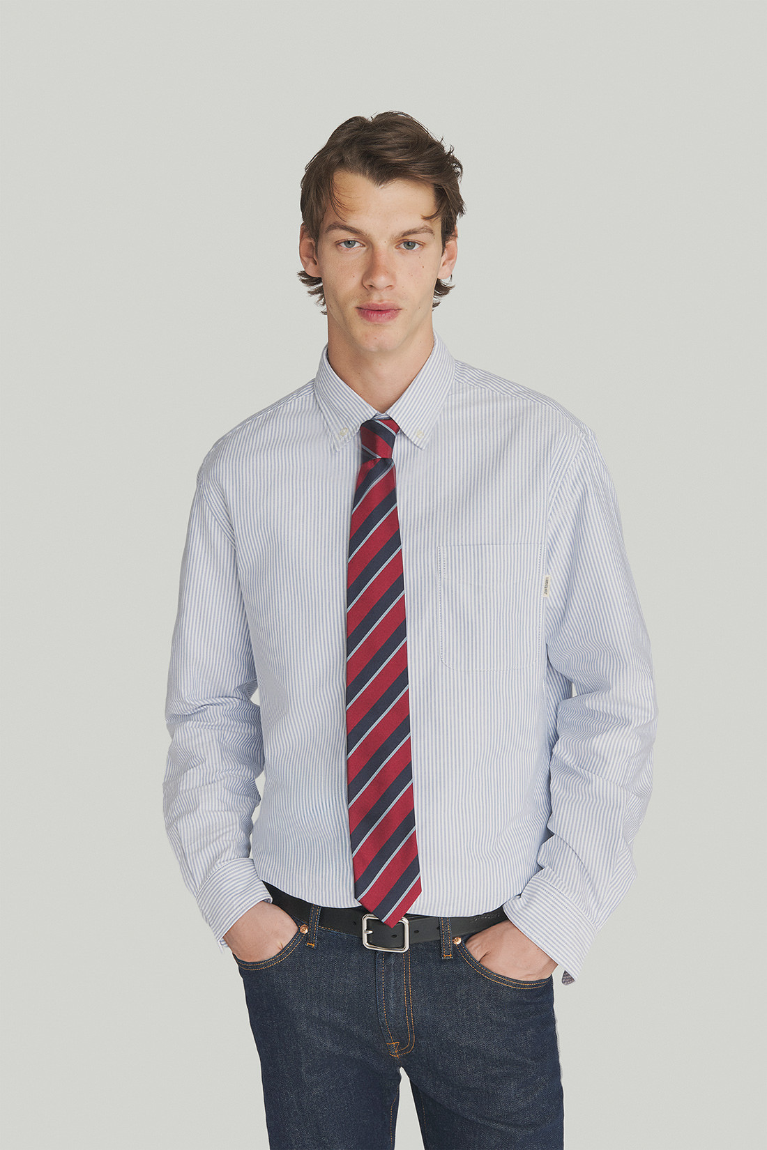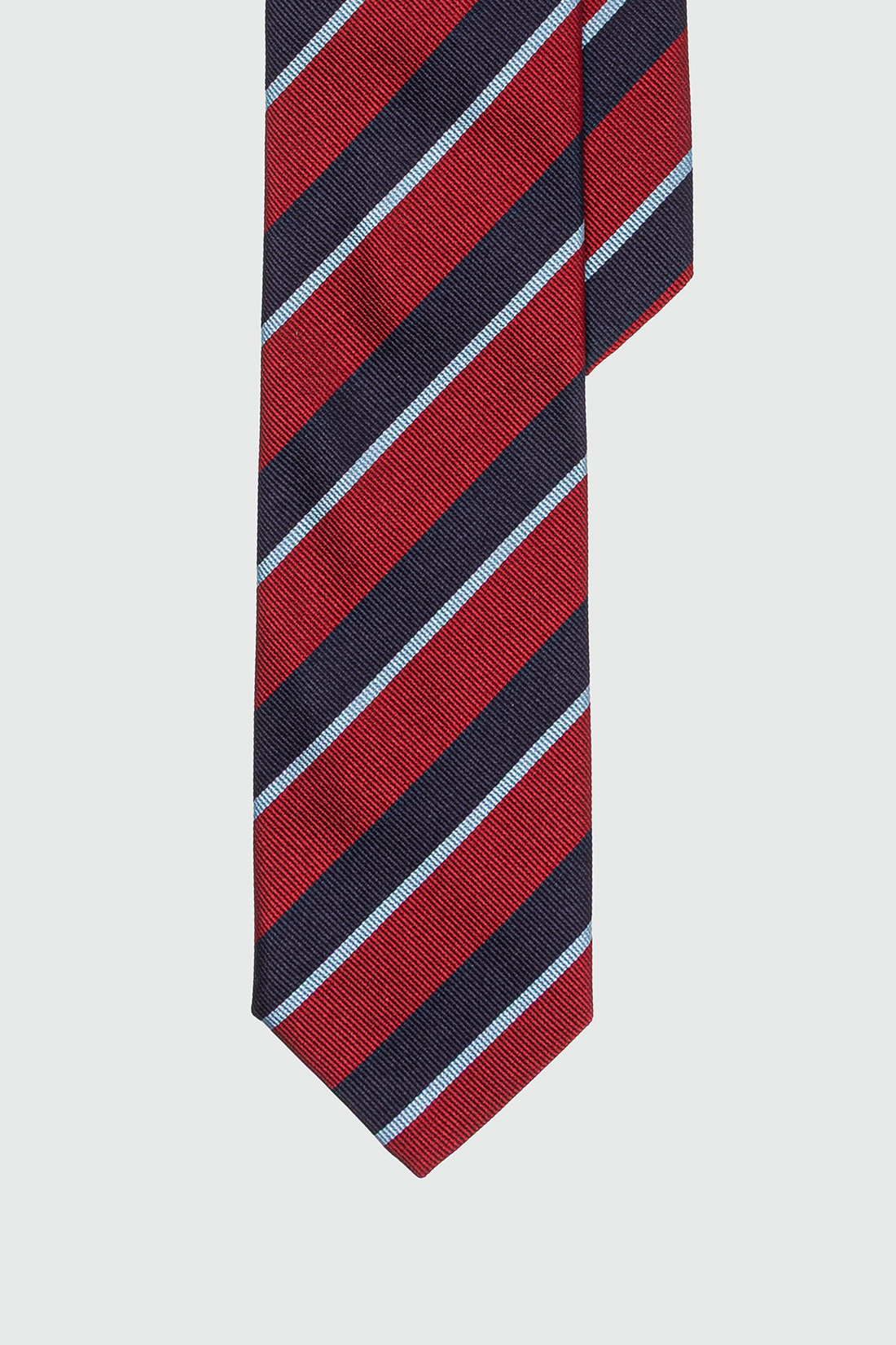 - Cravatta in seta cucita a mano con motivo Accademy Stripes.