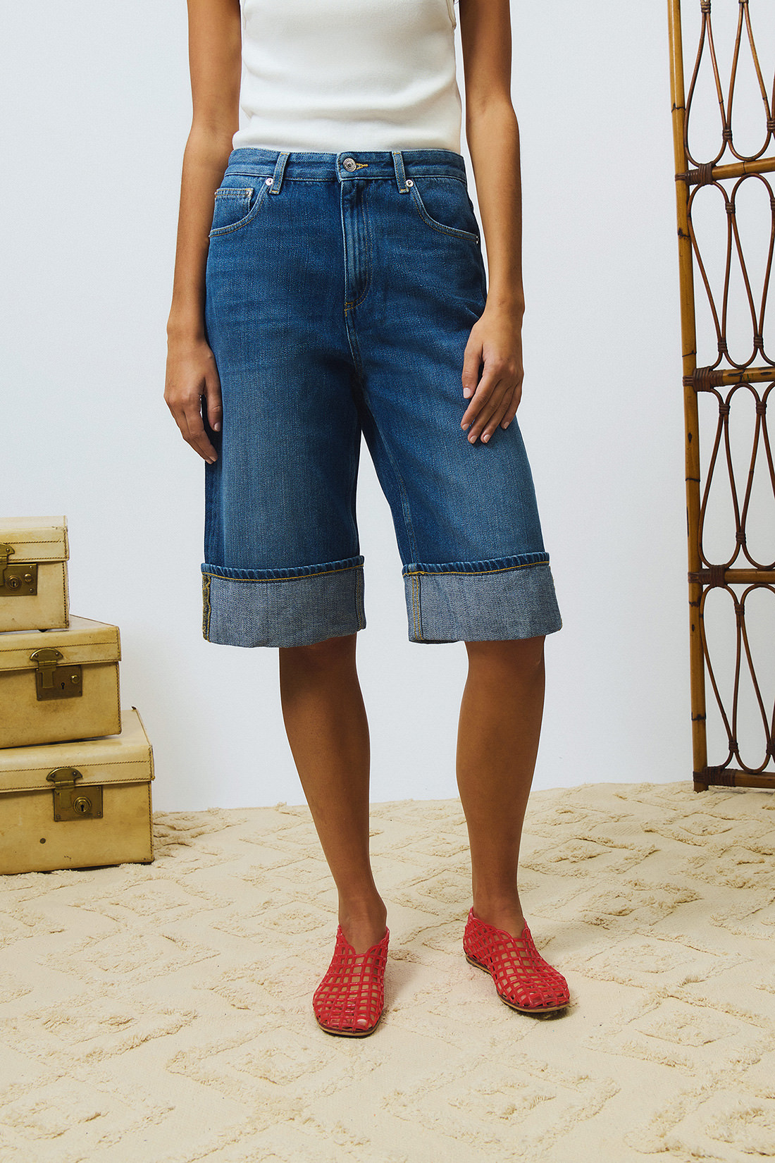 - Bermuda in denim con lavaggio medio.