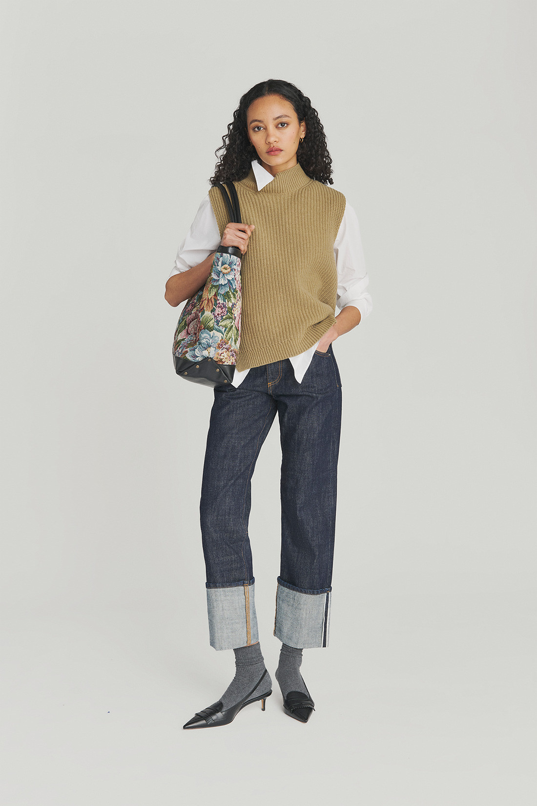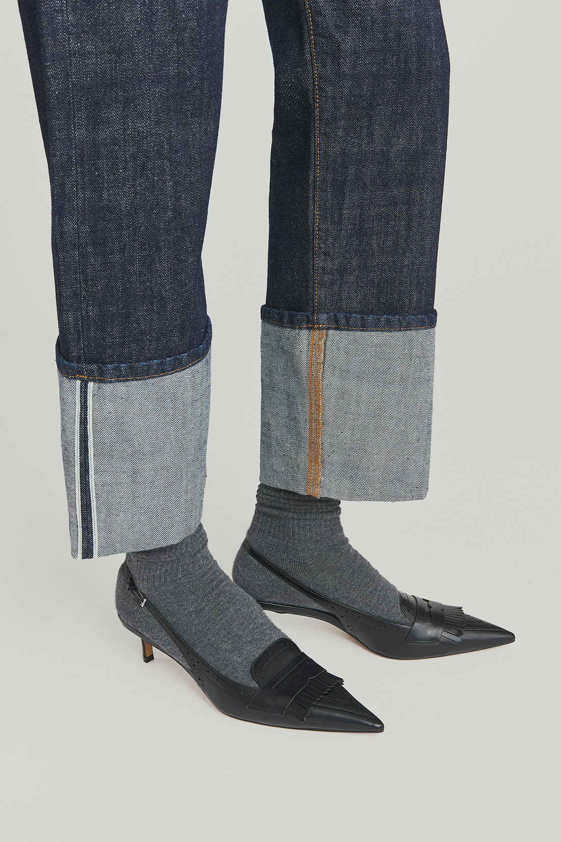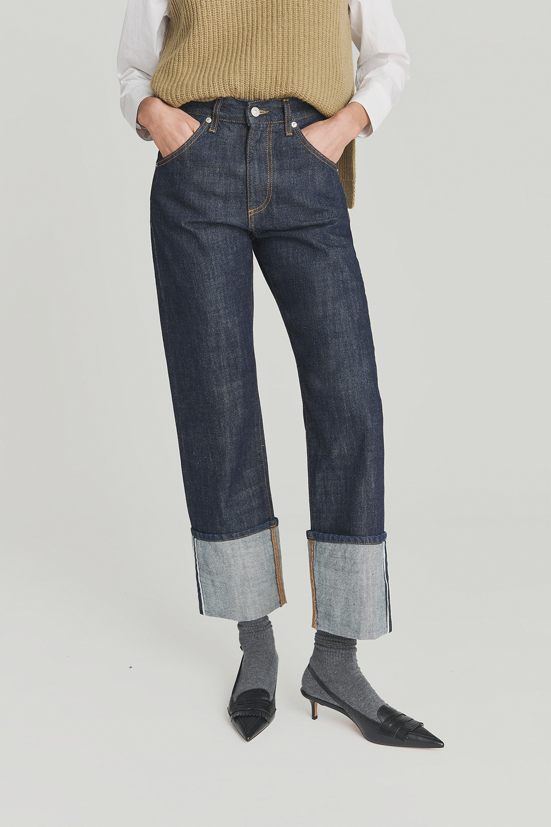 - Jeans in denim rinse con lavaggio scuro e impunture in contrasto.
