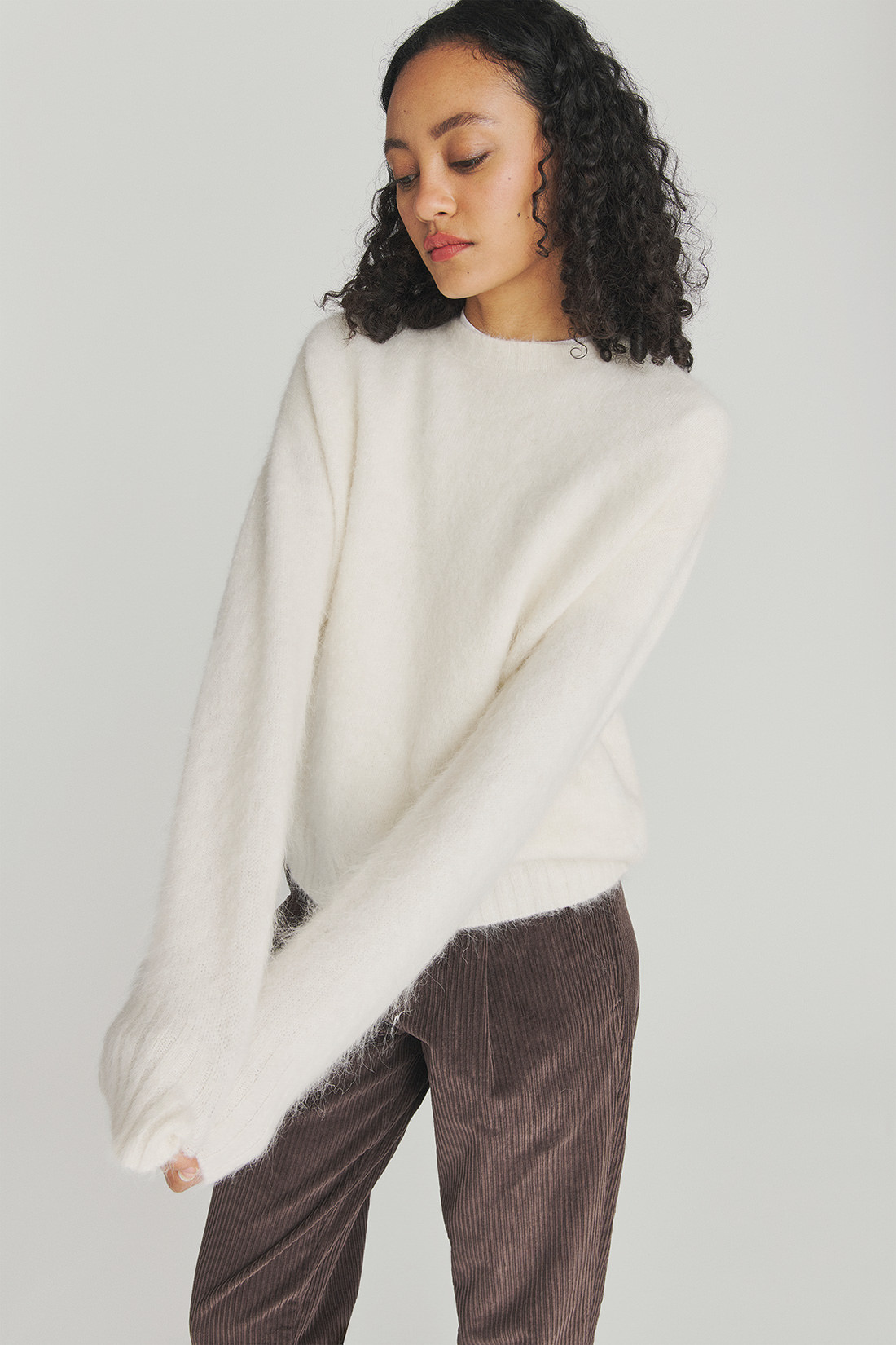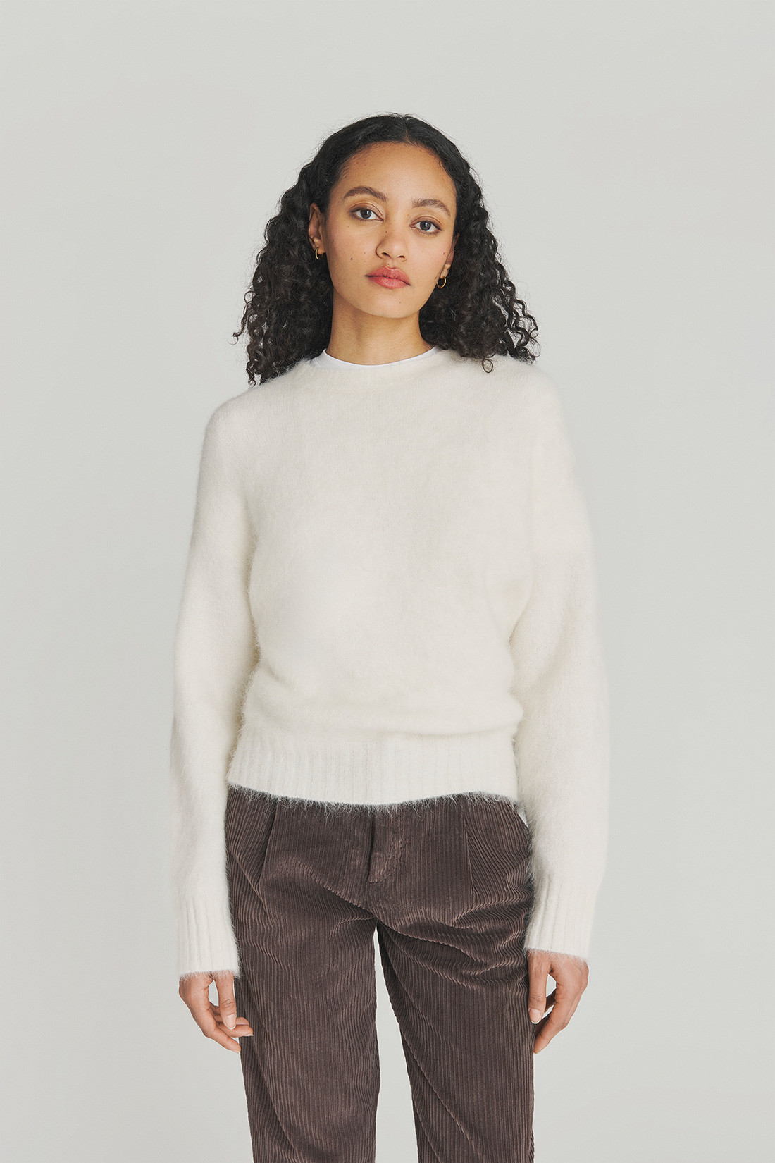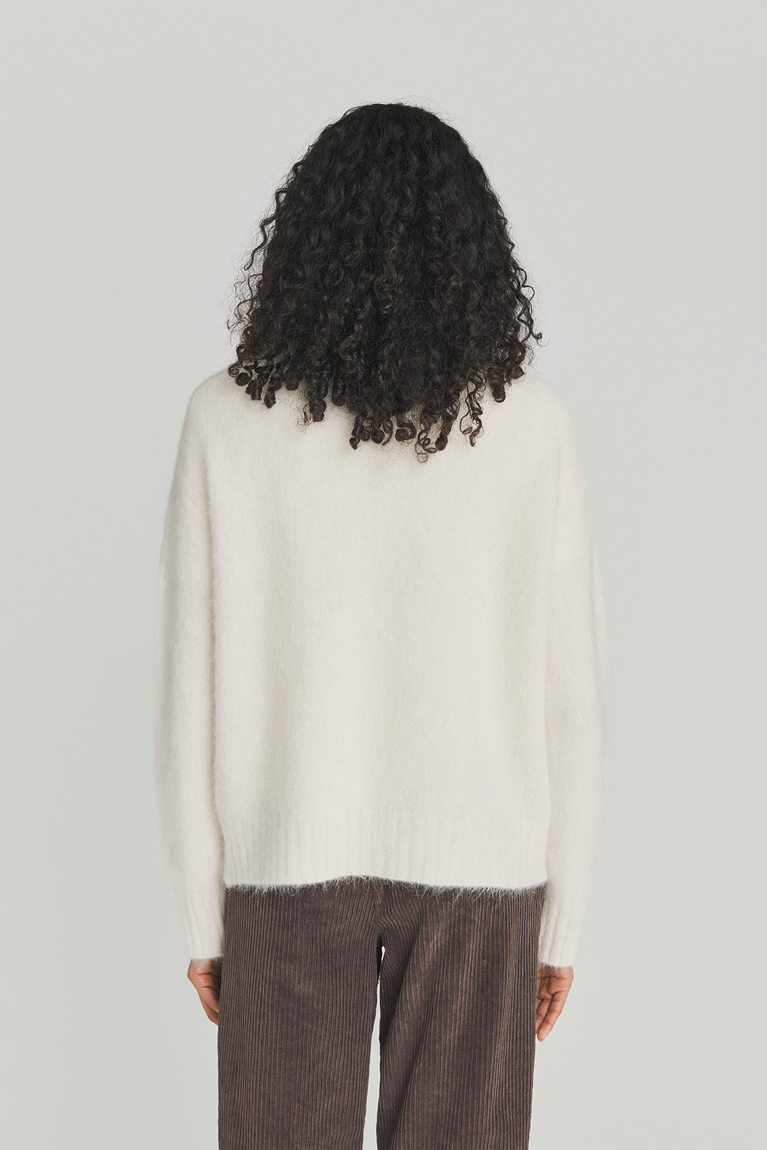 - Maglia girocollo in alpaca con filato brushed tinta unita.