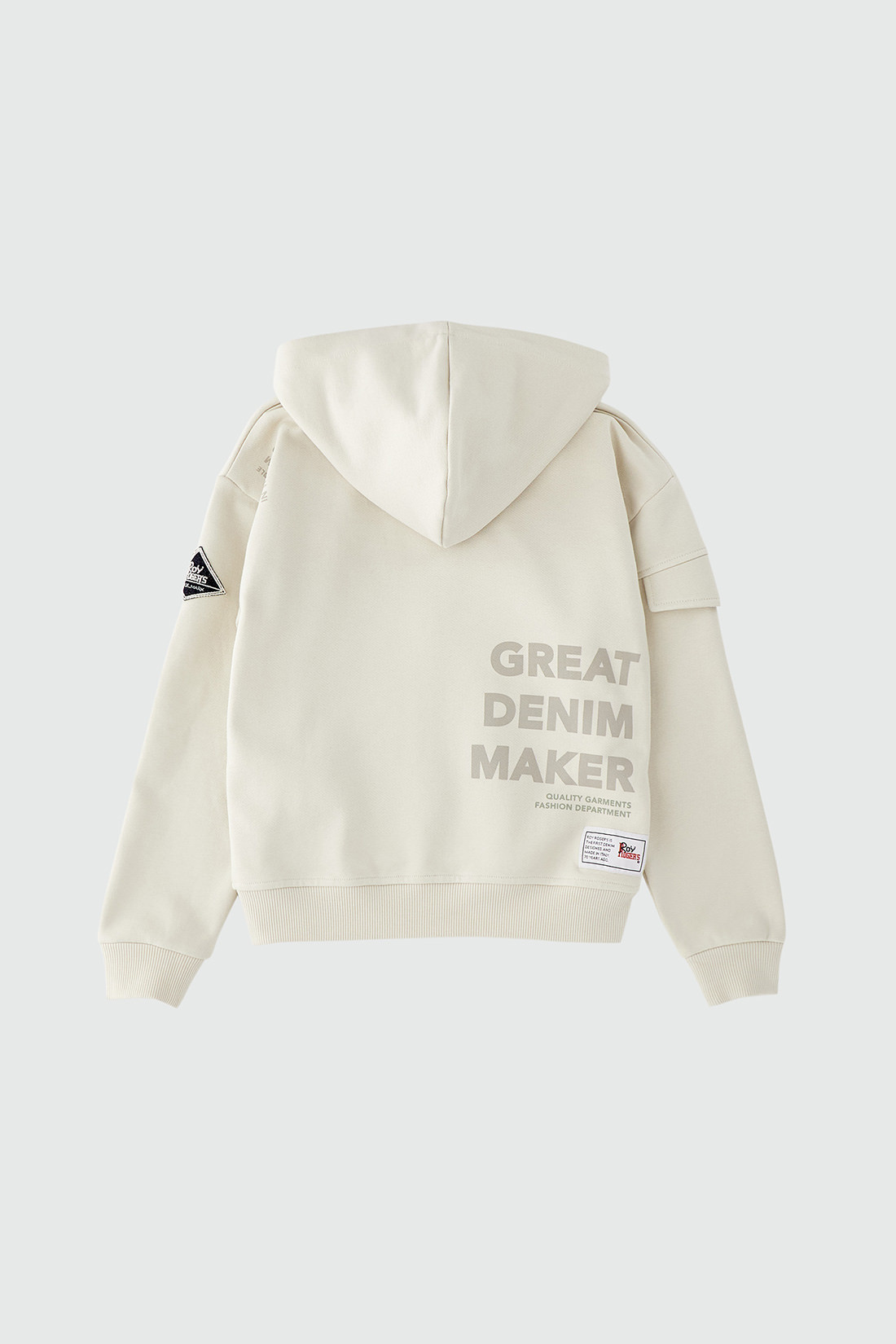 - Maniche lunghe con label Roy Roger's in denim applicata.