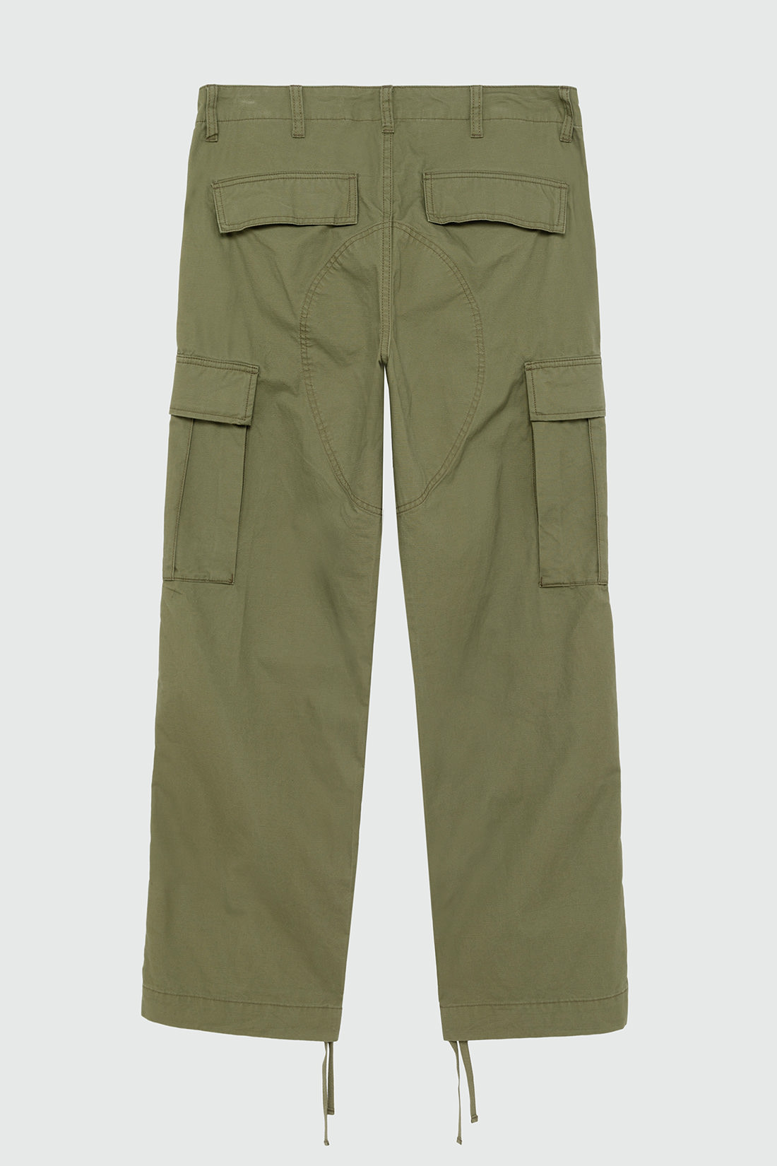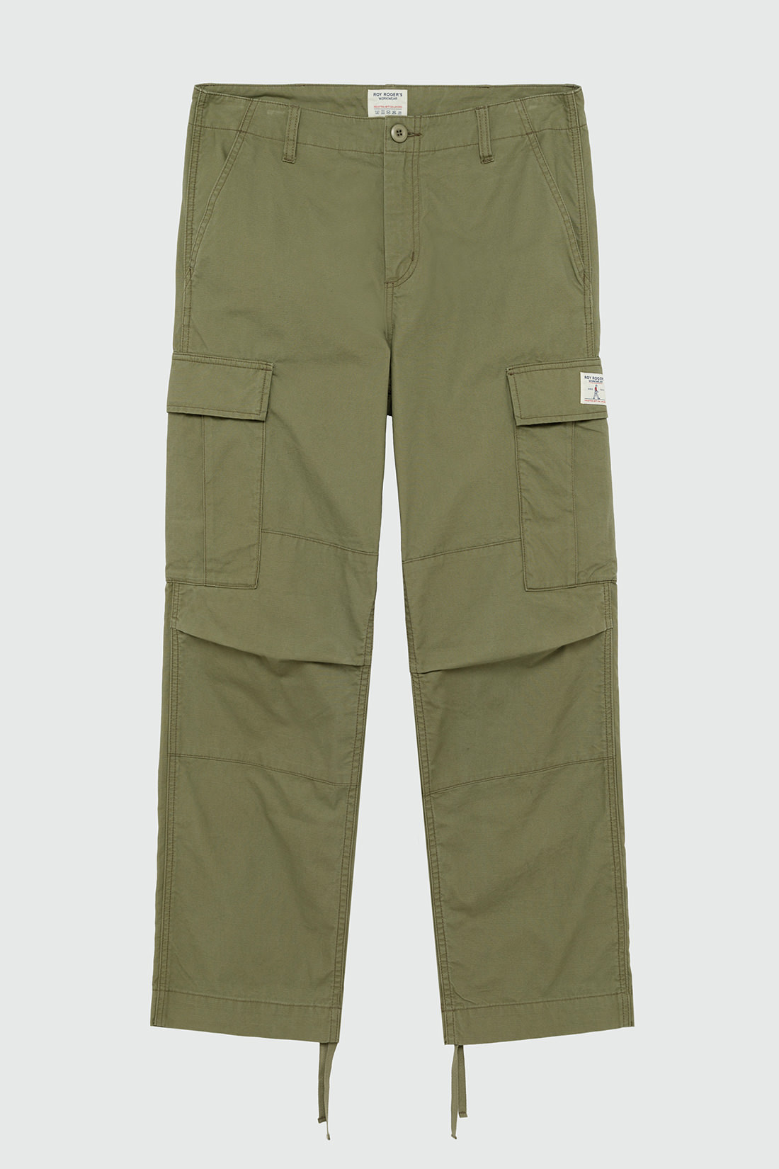 - Due tasche all'americana sul fronte, due tasche sul retro con patta e tasconi cargo di lato con label applicata.
