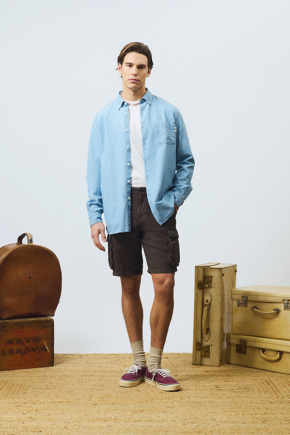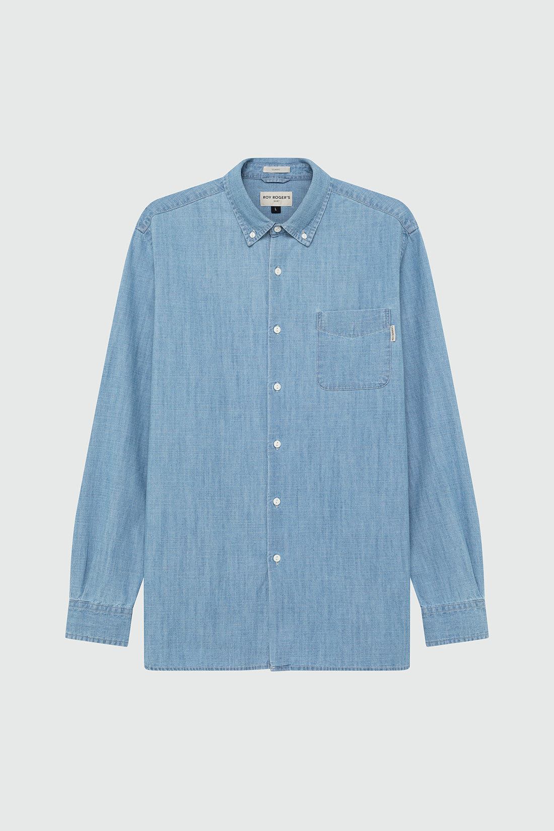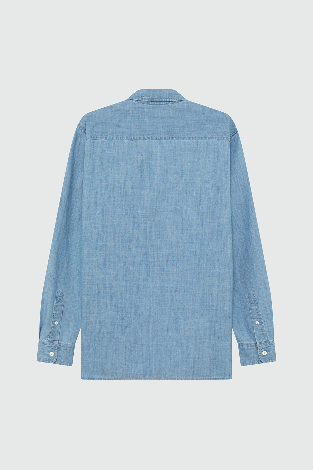 - Camicia in denim chambray con lavaggio chiaro.