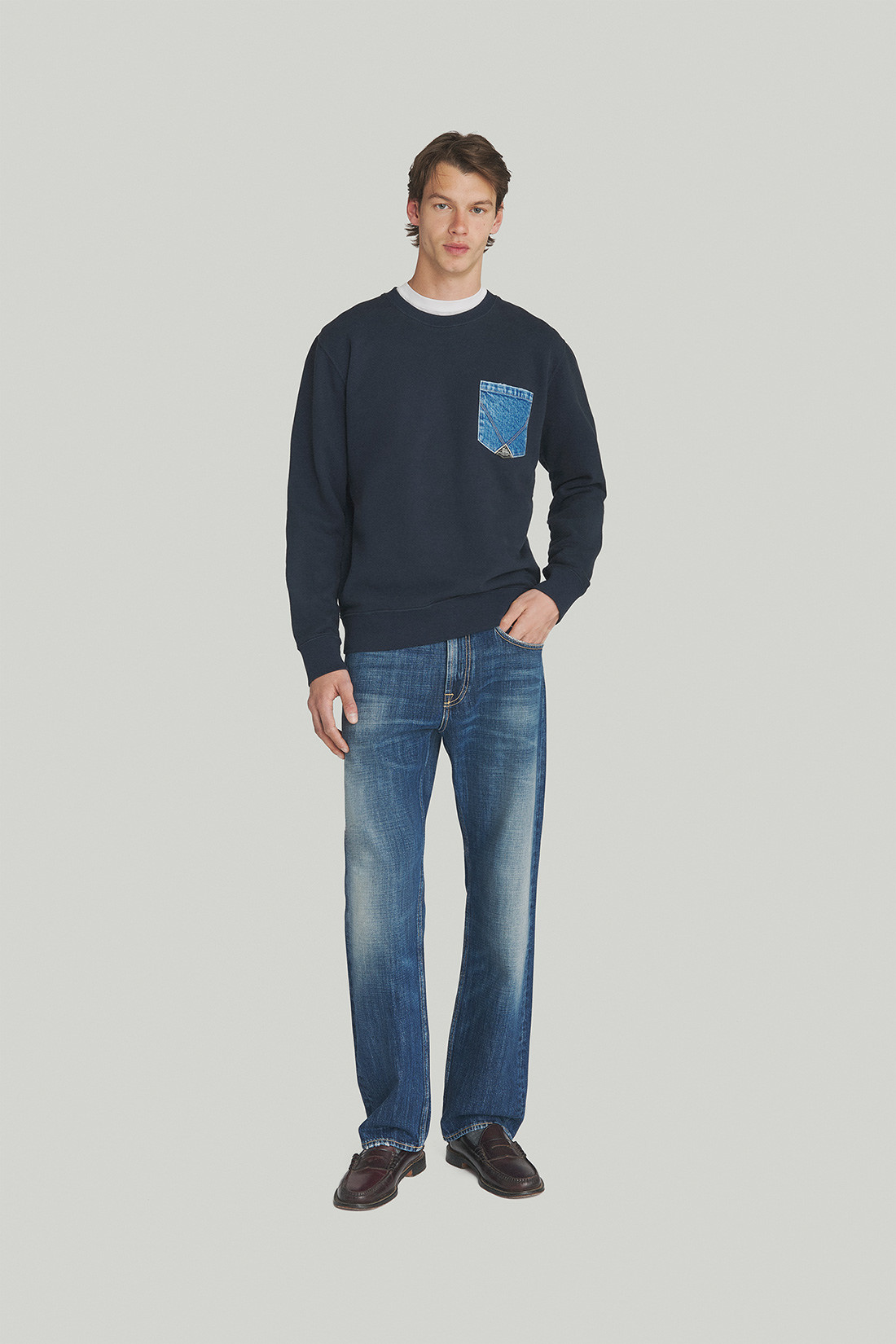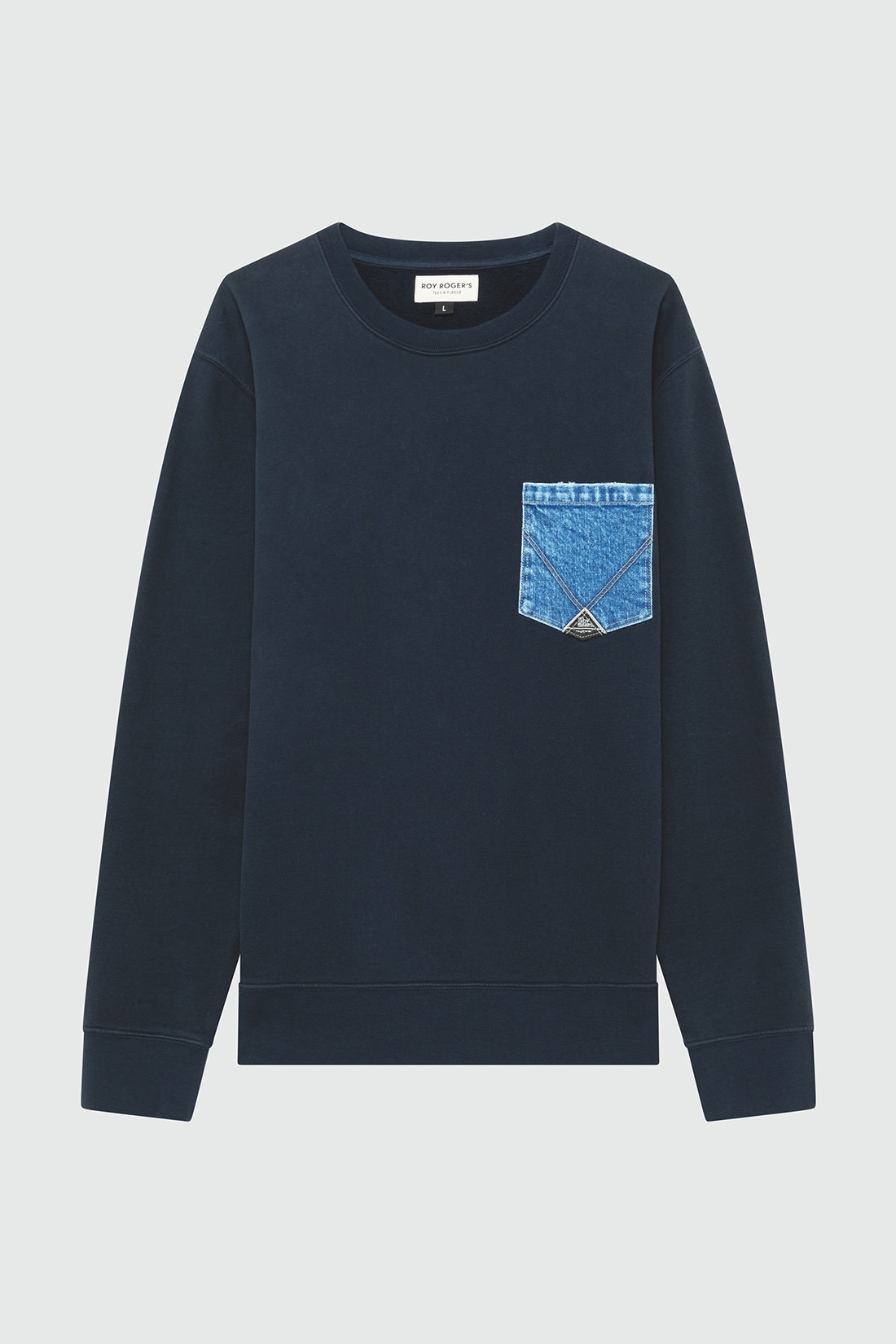 - Tasca piatta sul petto in denim con lavaggio scuro e label Roy Roger's applicata.