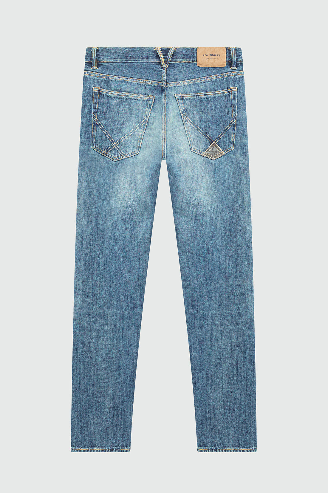 - Jeans in denim Re-Search con lavaggio medio e leggere baffature sul fronte.