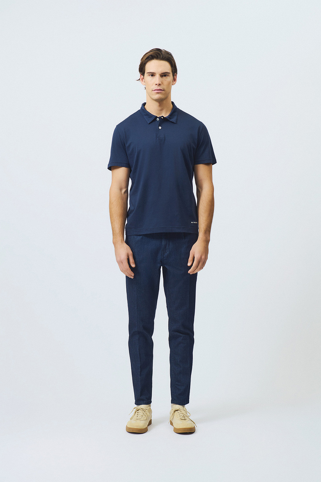 - Due tasche sul fronte e due tasche a filetto sul retro con bottone logato.