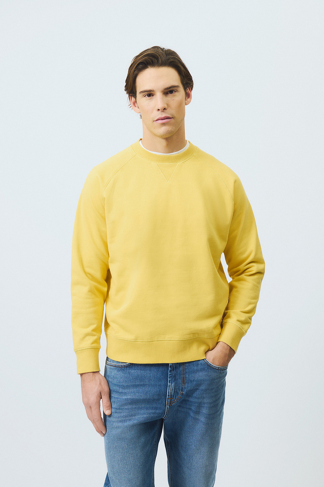 - Felpa girocollo in cotone no brushed tinta unita.
