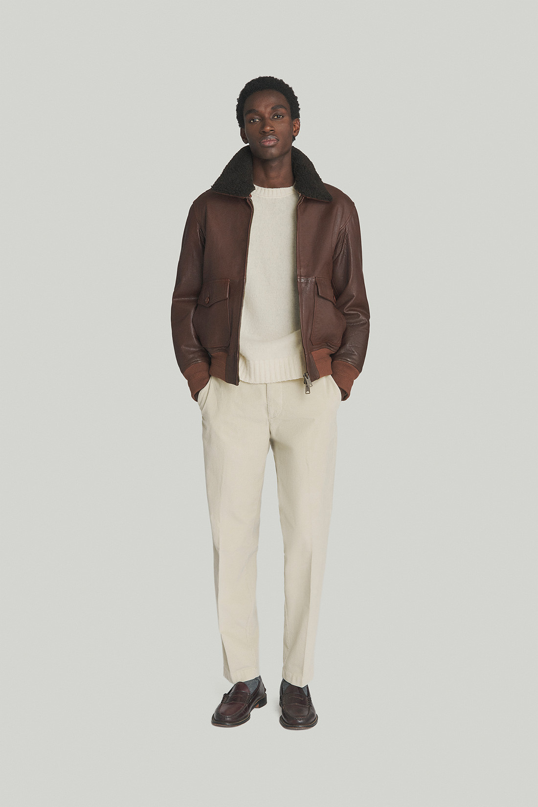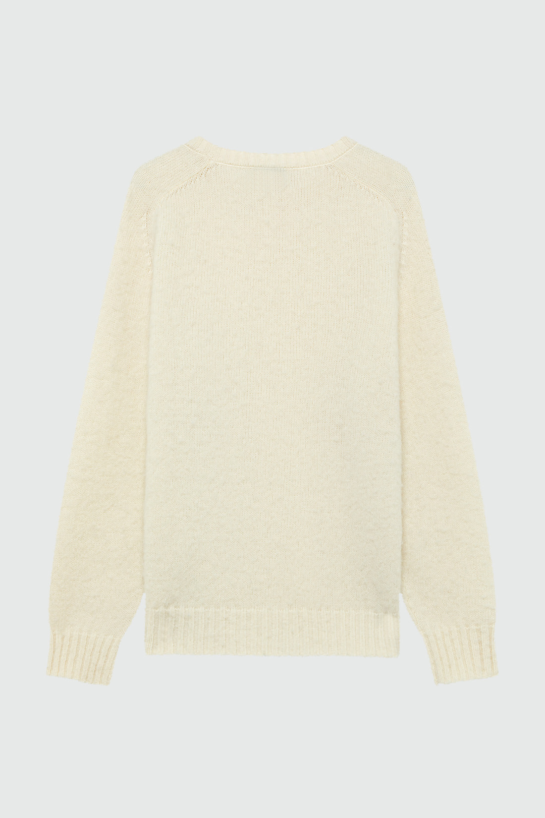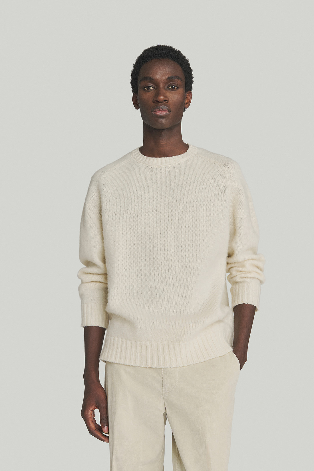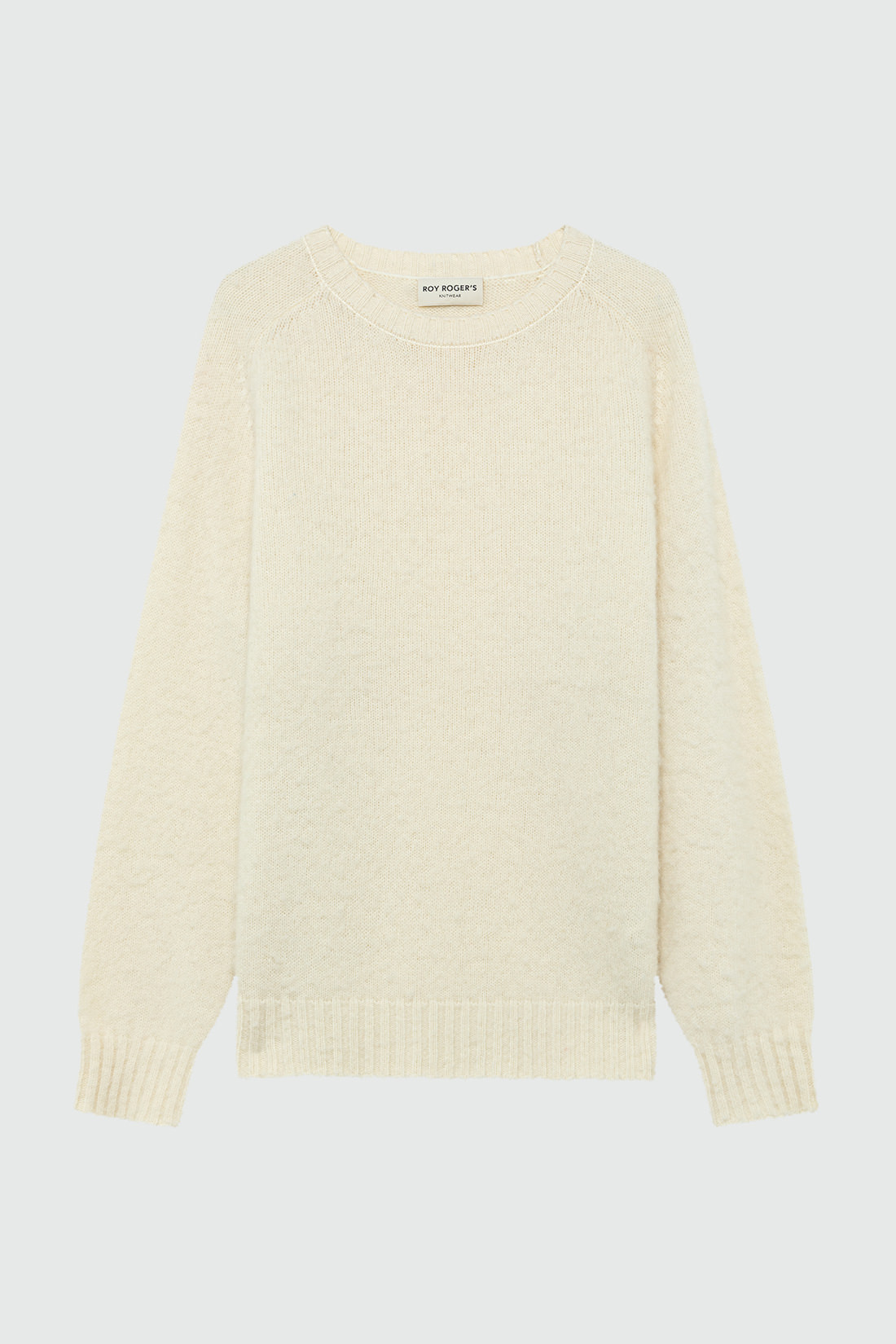- Maglia girocollo in lana Shetland brushed tinta unita.