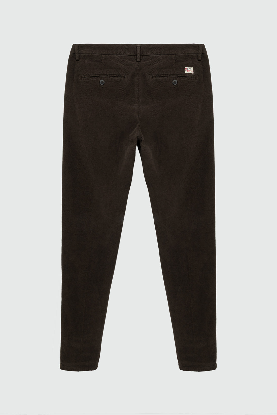 - Due tasche all'americana sul fronte e due tasche a filetto sul retro con bottone logato.